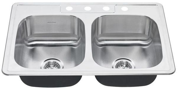 Ideal for quick kitchen makeovers, the Colony 33 x 22 inch Double Bowl Stainless Steel Kitchen Sink is an excellent addition to any traditional kitchen. Easy to install, with a 4-hole configuration, this sink matches your replacement needs. Coordinating beautifully with the Colony kitchen faucet collections, this double bowl kitchen sink will transform your kitchen work space.Read More