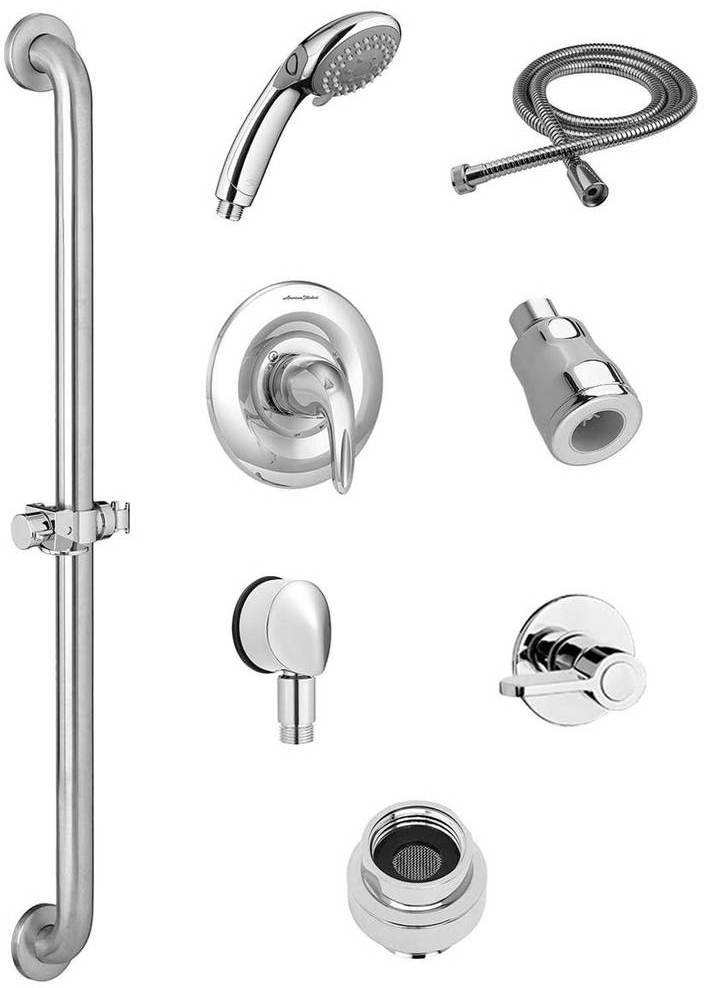 Looking for an all-in-one shower system solution for your bathroom? American Standard offers showers perfect for commercial use complete with shower head, hand shower, tub spouts and grab bars to suit all bathing needs. With multiple ADA accessible models, you’re sure to find a shower system to suit all patrons.Read More