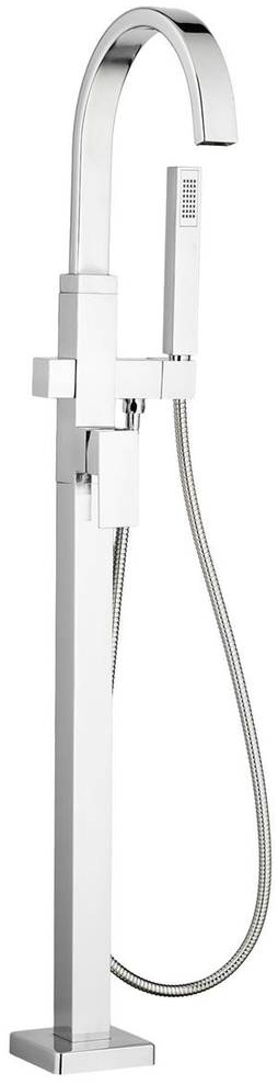 Add a statement and superior performance to your bathroom design with the Contemporary Square Freestanding Tub Filler with Hand Shower. Combining the best of form and function, it features a sweeping arched faucet, lever handle, and sleek, personal shower for rinsing off, bathing little ones, and cleaning the tub with ease. Available in 2 beautiful finishes to coordinate with faucets and accessories. Trim and rough valve sold separately.Read More