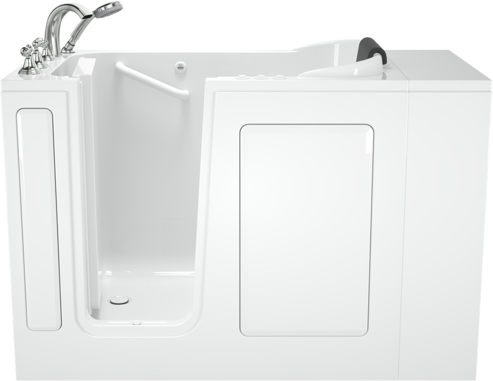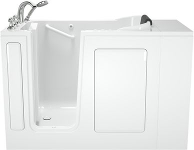 This gelcoat Premium Series 28x48-inch Walk-In Bathtub with Combination Air Spa system and Whirlpool Massage system from American Standard provides a spa-like experience, with water and air jets that provide an effervescent and relaxing bath. This walk-in tub fits in smaller spaces and uses less water - the extender kit makes it easy to retrofit in a standard-size bath space. A chromatherapy system installed in the tub helps to set a relaxing mood, and can be adjusted to a wide range of colors for a custom experience every time.Read More