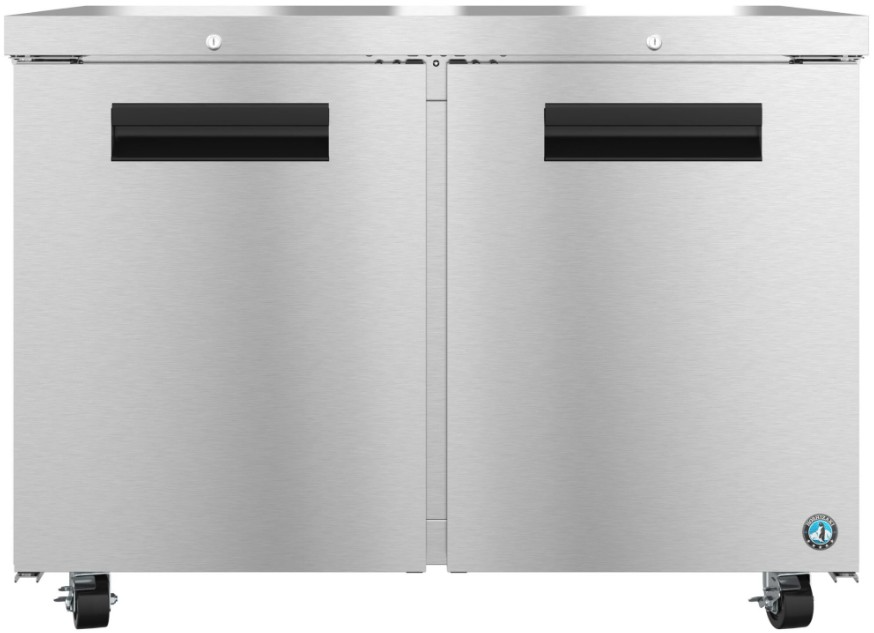 The UF48B-01 Steelheart Series Undercounter two section freezer with stainless doors is a space saving workhorse. Engineered to maintain food safe temperatures in 100°F ambient conditions with a net capacity of 12 cubic feet this efficient undercounter freezer and front air flow design is perfect for hot/tight kitchens.Read More